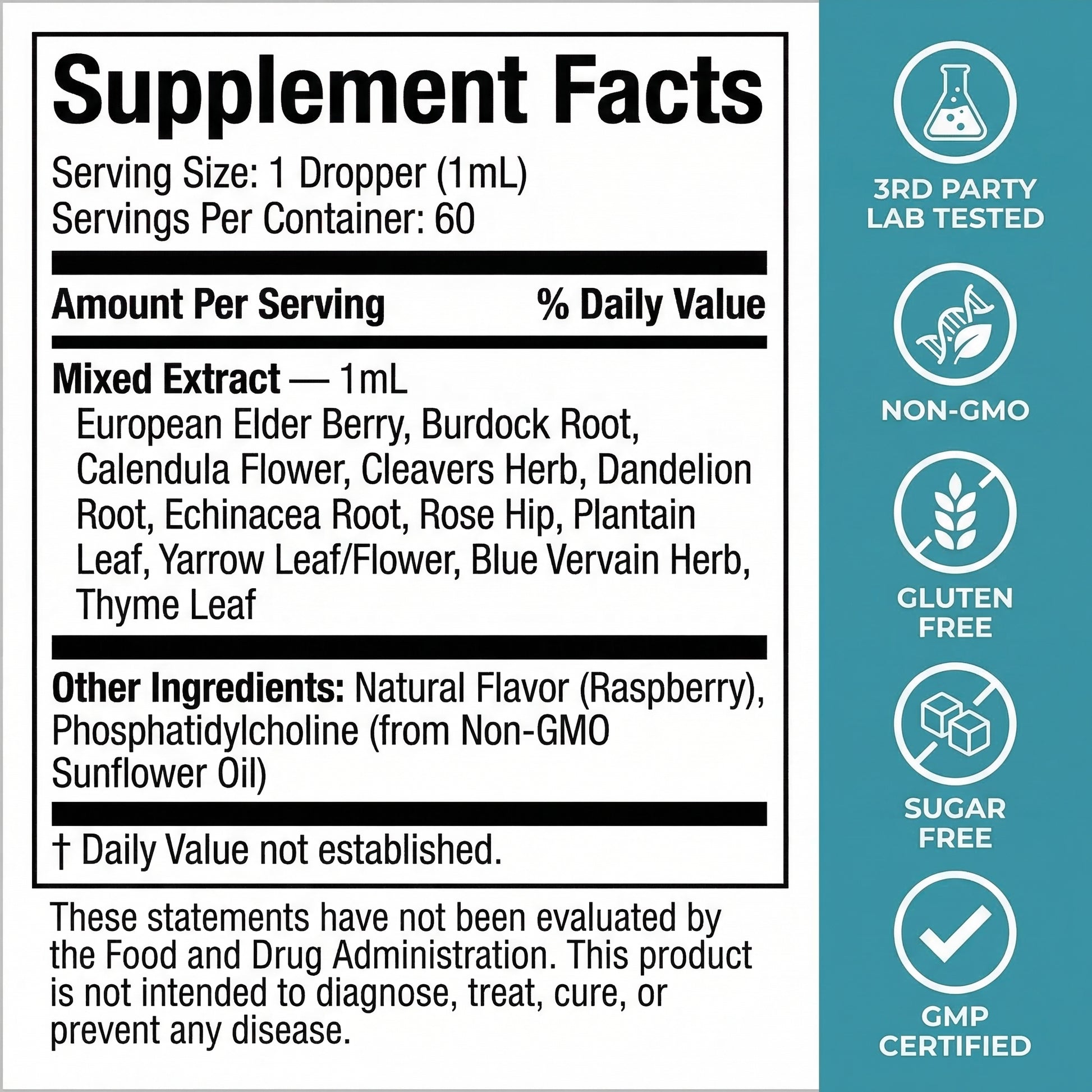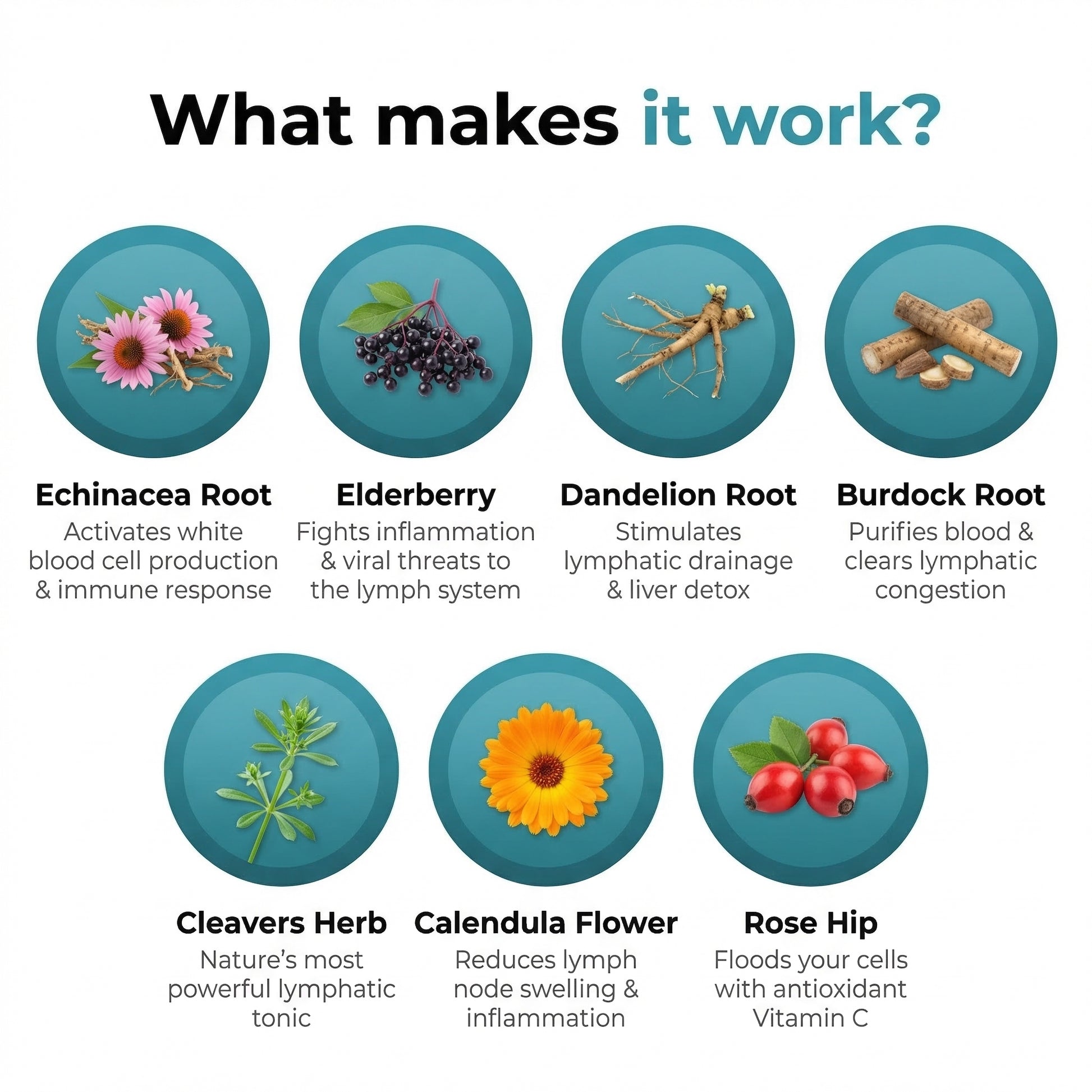Echinacea, Elderberry, Cleavers, Burdock, and 7 more organic herbs sourced for maximum potency
